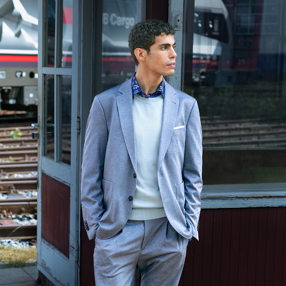 Schmal, aber bequem – Stretch-Stoffe und softe Silhouetten sorgen für Tragekomfort und ein smartes Erscheinungsbild. Doppelreiher und Oversized-Modelle feiern ihr Comeback.