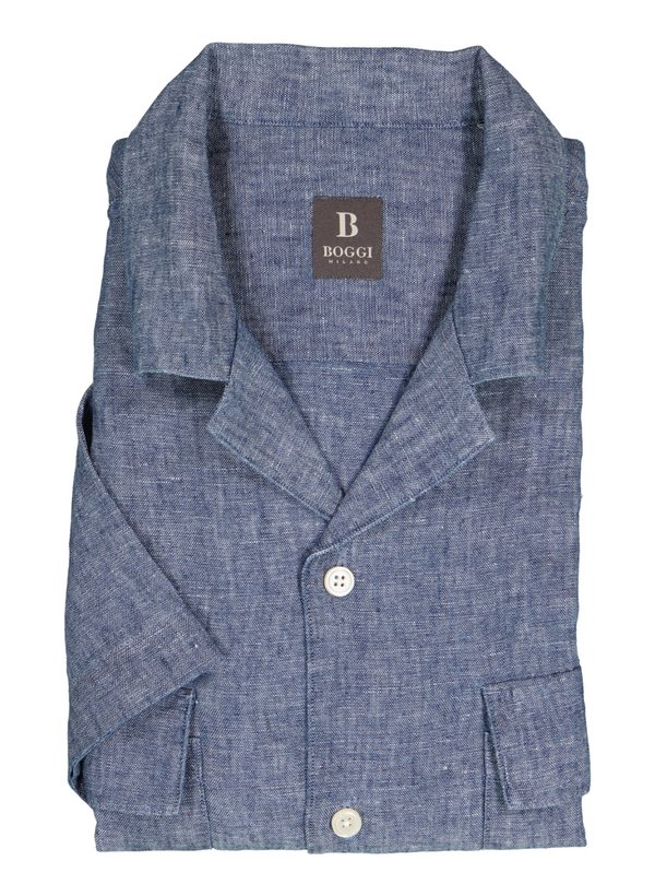 Hemd Hali, Baumwolle-Leinen, Button-Down, Brusttasche, dunkelblau meliert