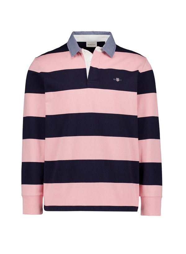 Polo-Shirt, Classic, Baumwoll-Jersey, hellpink-blau gestreift