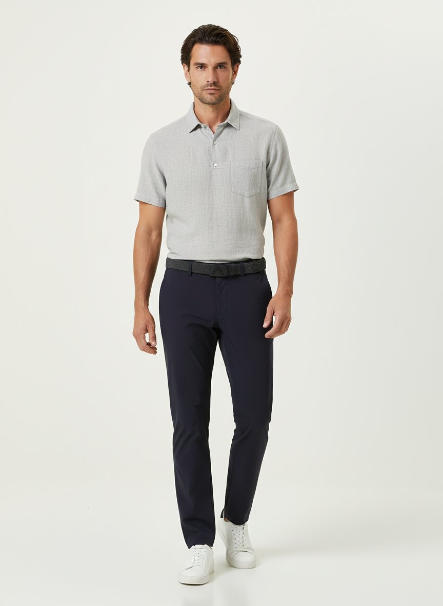 Das Obermaterial verbindet 71 Prozent Polyamid mit 29 Prozent Elasthan zu einer hochelastischen, wasserabweisenden Funktionsfaser, die Golf-Anforderungen präzise erfüllt. Der Stoff trocknet schnell und behält seine Form – ideal für wechselhafte Bedingungen auf dem Platz. Die Tapered-Passform sitzt schlank am Oberschenkel und verjüngt sich elegant zum Knöchel, ohne dabei Bewegungsfreiheit zu opfern. Praktische Details wie seitliche Einschubtaschen, Gesäßtaschen und ein verdeckter Reißverschluss auf der rechten Seite kombinieren Funktionalität mit klassischer Ästhetik. ALBERTO, das Mönchengladbacher Traditionsunternehmen mit über 100 Jahren Expertise im Hosenbereich, setzt auf technische Präzision statt Kompromisse – jede Naht und jedes Material dient dem perfekten Sitz.Unser Tipp: Kombinieren Sie die Navy-Golfhose mit einem hellblauen Poloshirt und weißen Golfschuhen für einen klassischen, eleganten Platz-Look.