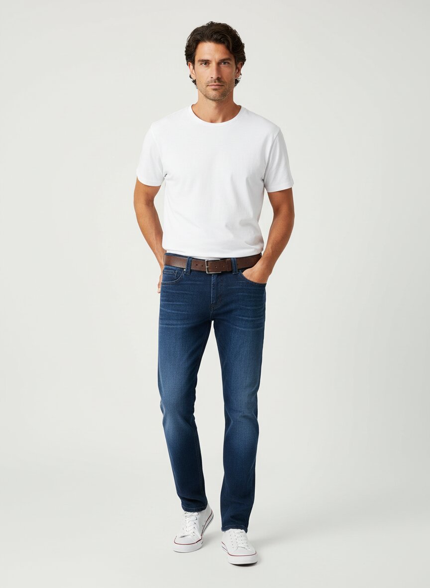 Diese Pipe-Jeans in tiefem Navyblau besticht durch gezielt gesetzte Used-Details, die dem klassischen Schnitt moderne Lässigkeit verleihen. Das Premium-Denim-Gewebe aus 94 % Baumwolle, 5 % T400 Elastomultiester und 1 % Elasthan bietet eine Dehnbarkeit, die den ganzen Tag über Bewegungsfreiheit garantiert, ohne an Form zu verlieren. Der Regular Fit sitzt präzise an Oberschenkel und Unterschenkel – ideal für Business ebenso wie für entspannte Wochenendtage. Die klassische Five-Pocket-Ausstattung mit zusätzlicher Münztasche bewährt sich seit Generationen und bietet praktische Ordnung im Alltag.