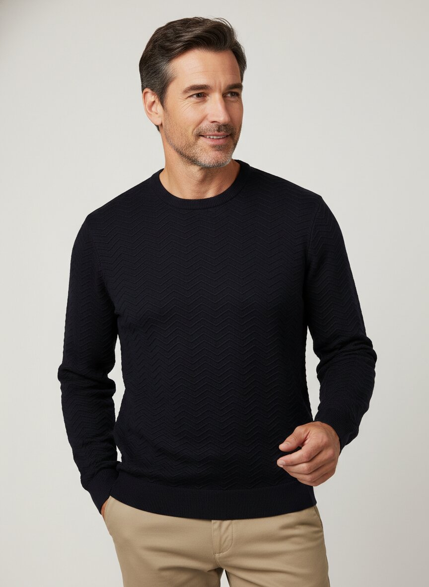 Der klassische navy Pullover mit Struktur-Strick eignet sich perfekt für casual und smart-casual Looks. Er ist vielseitig kombinierbar und ideal für Frühling und Sommer geeignet.
