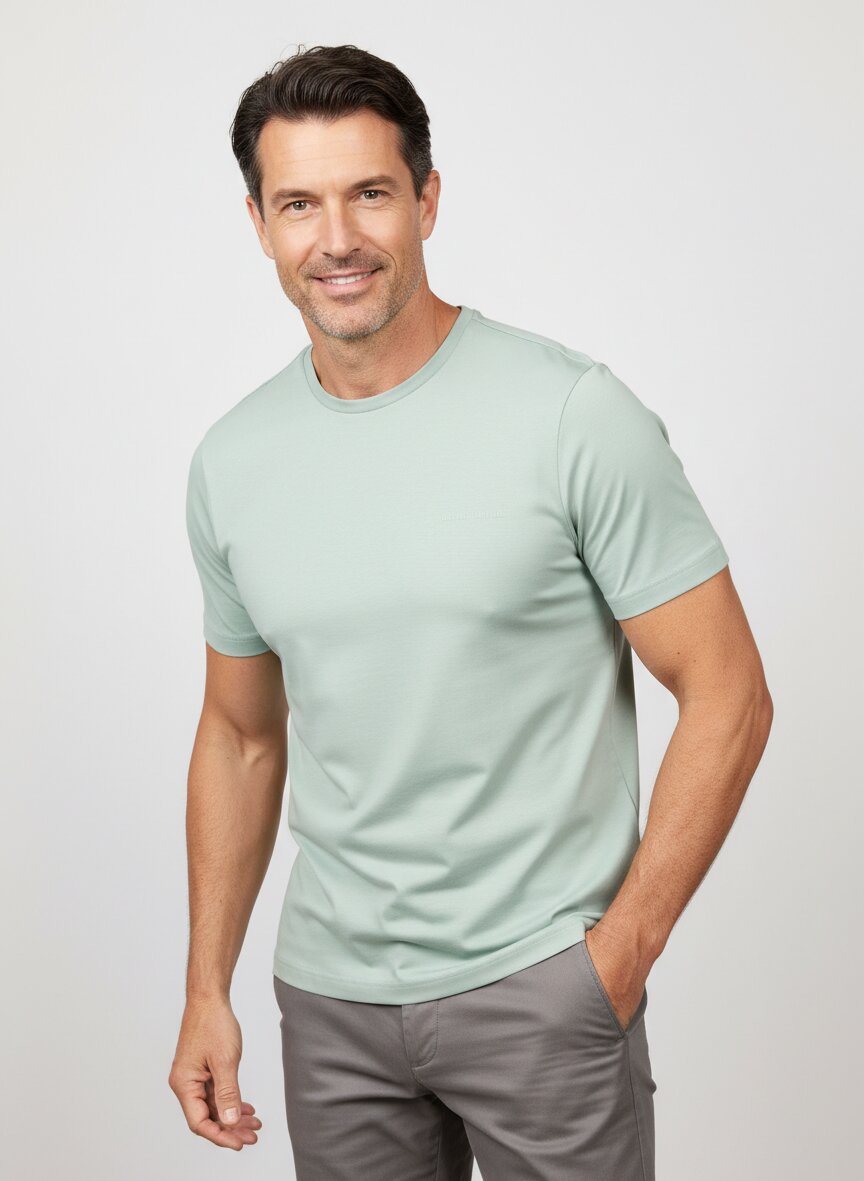 Dieses T-Shirt präsentiert sich in einem warmen, geerdeten Grünton, der Eleganz ohne Umschweife ausstrahlt. Das Jersey aus 100 Prozent Baumwolle sitzt angenehm locker auf der Haut und bietet optimale Atmungsaktivität für warme Tage. Der schlichte Rundhals-Ausschnitt macht es zur vielseitigen Grundlage für Business-Casual bis Urban-Styling. Mit einer Rückenlänge von etwa 71 Zentimetern bei Größe M liegt das Shirt in der idealen Proportion zwischen Alltag und Eleganz. BALDESSARINI verbindet europäische Schneiderkunst mit zeitloser Maskulinität – kein überflüssiges Design, nur das Wesentliche perfekt umgesetzt.Unser Tipp: Kombinieren Sie das Grün-Shirt mit einer anthrazitfarbenen Chino und Ledersneakern für einen modernen, entspannten Look, der auch im Büro besticht.