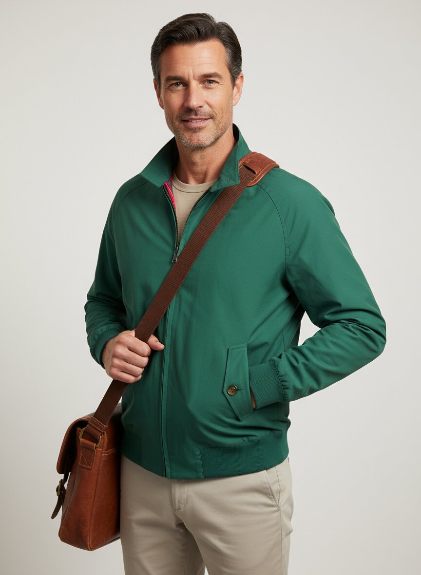Ein Stehkragen mit charakteristischer Lasche und der Zwei-Wege-Reißverschluss prägen diese Ikone der Jackengeschichte – funktional und zeitlos zugleich. Der Materialmix aus 58 % Polyester und 42 % Baumwolle bietet Strapazierfähigkeit ohne Steifheit, während das Baumwoll-Polyester-Futter angenehm auf der Haut liegt. Die Raglanärmel ermöglichen freie Bewegungsfreiheit, die geknöpften Pattentaschen und Rippenstrickbündchen verleihen dem Blouson sportliche Präzision. Der dezente Zierkoller im Rückteil unterstreicht die elegante Silhouette – ideal für Übergangstage zwischen Alltag und Freizeit. BARACUTA steht seit Jahrzehnten für britische Sportswear-Tradition: Die G9 wurde als Golfblouson konzipiert und avancierte zur globalen Stilikone, die Generationen von Männern begleitet.Unser Tipp: Kombinieren Sie die Jacke mit einer weißen Baumwollhemd und dunklen Chinos für einen zeitlosen Smart-Casual-Look, der für Büro wie Wochenende funktioniert.