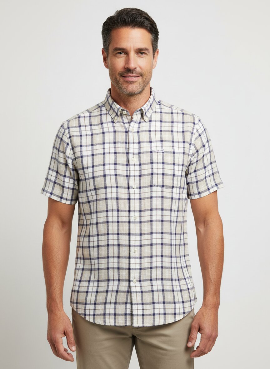 Barbour, Kurzarmhemd, Baumwolle, Kent, Brusttasche, beige kariert