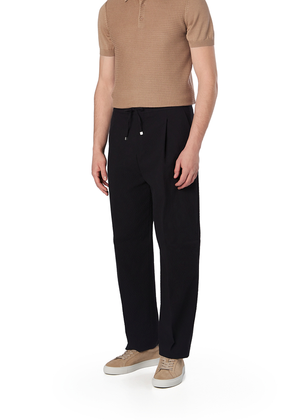 Bundfaltenhose Tari, Modern, Seersucker, schwarz