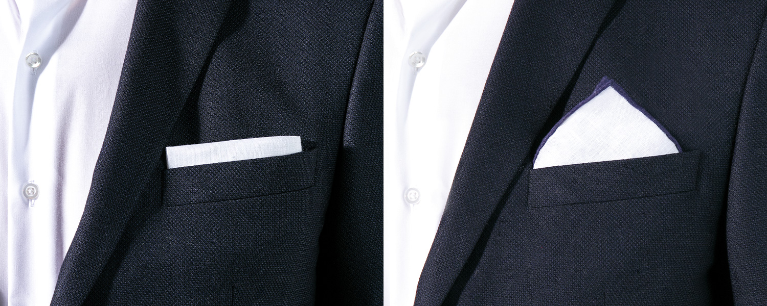 Die linke und rechte Ecke jeweils nach innen schlagen. Dabei entsteht symbolisch ein geöffneter Brief. Danach können Sie es in die Brusttasche stecken, sodass die spitze Kante herausschaut.