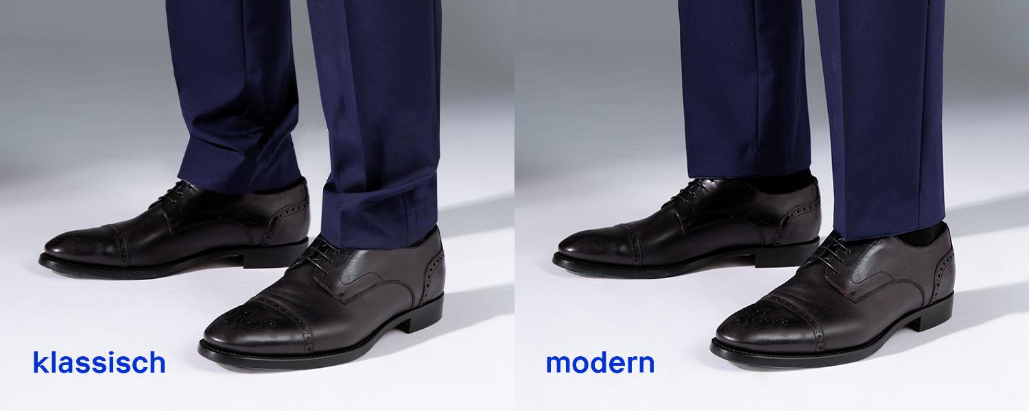 klassisch: Hose liegt auf dem Schuh auf und bildet eine Falte