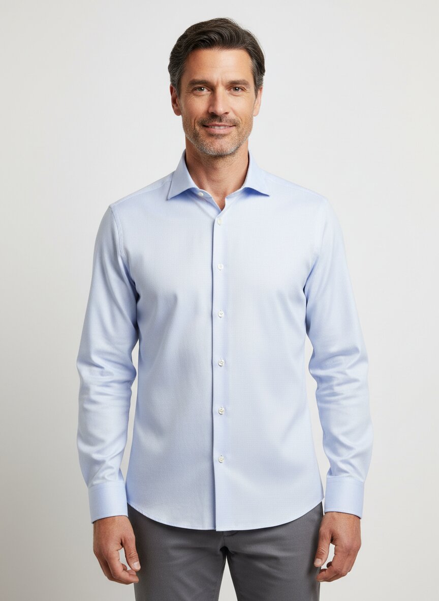 Hellblau meliert mit feinem Strukturgewebe – bügelfreies Business-Hemd
