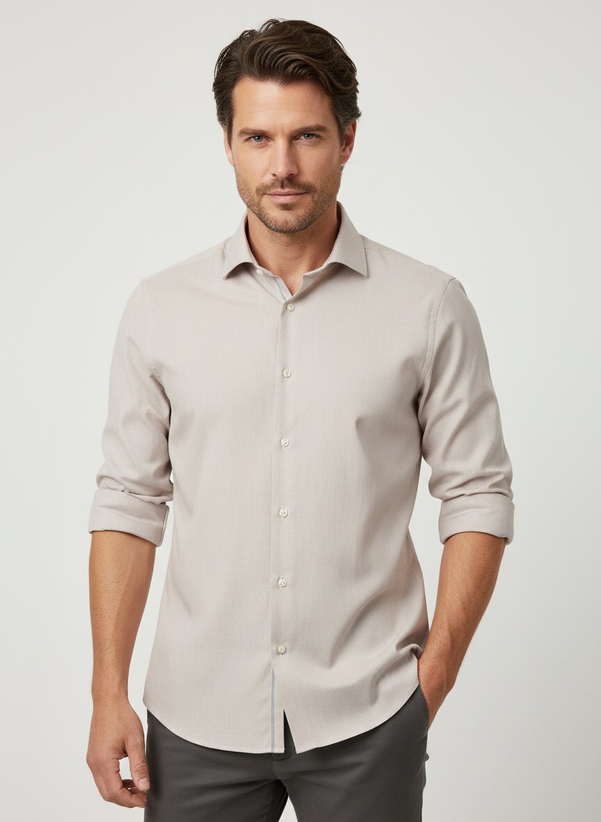 Das Hemd lässt sich perfekt zu verschiedenen Anzügen kombinieren und eignet sich sowohl für Business-Outfits als auch für gehobene Casual-Looks. Tragen Sie es mit einer dunkelgrauen Anzughose zu Loafern für Business oder offen über einem weißen T-Shirt zu einer hellen Chino für entspannte Sommertage.
