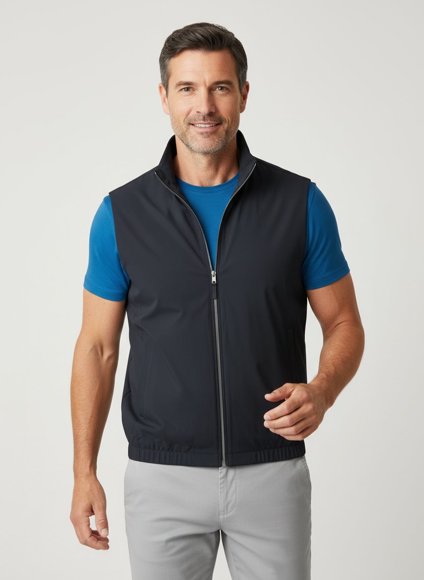Die wasserabweisende Mikrofaser aus 85 % Polyamid und 15 % Elasthan schafft eine glatte, griffige Oberfläche, die Feuchtigkeit zuverlässig abweist. Das Material liegt leicht an und bietet maximale Bewegungsfreiheit – ideal für aktive Tage im Büro oder Outdoor. Der moderne Stehkragen mit integrierter Kapuze, der Zwei-Wege-Reißverschluss und die praktischen seitlichen Reißverschlusstaschen machen diese Weste zum vielseitigen Begleiter zwischen Business und Freizeit. Zusätzliche Innentaschen sorgen für sichere Verstauung, während der elastische Saumabschluss die Silhouette präzise definiert. BOGGI Milano verbindet seit 1939 italienische Schneidertradition mit funktionaler Innovation – diese Weste verkörpert diese Philosophie perfekt für den modernen Geschäftsmann.Unser Tipp: Kombinieren Sie die navy Weste über einem weißen oder hellblauen Business-Hemd mit einer Chino oder dunklen Hose für einen eleganten, zugleich praktischen Look, der mühelos vom Büro ins Wochenende übergeht.