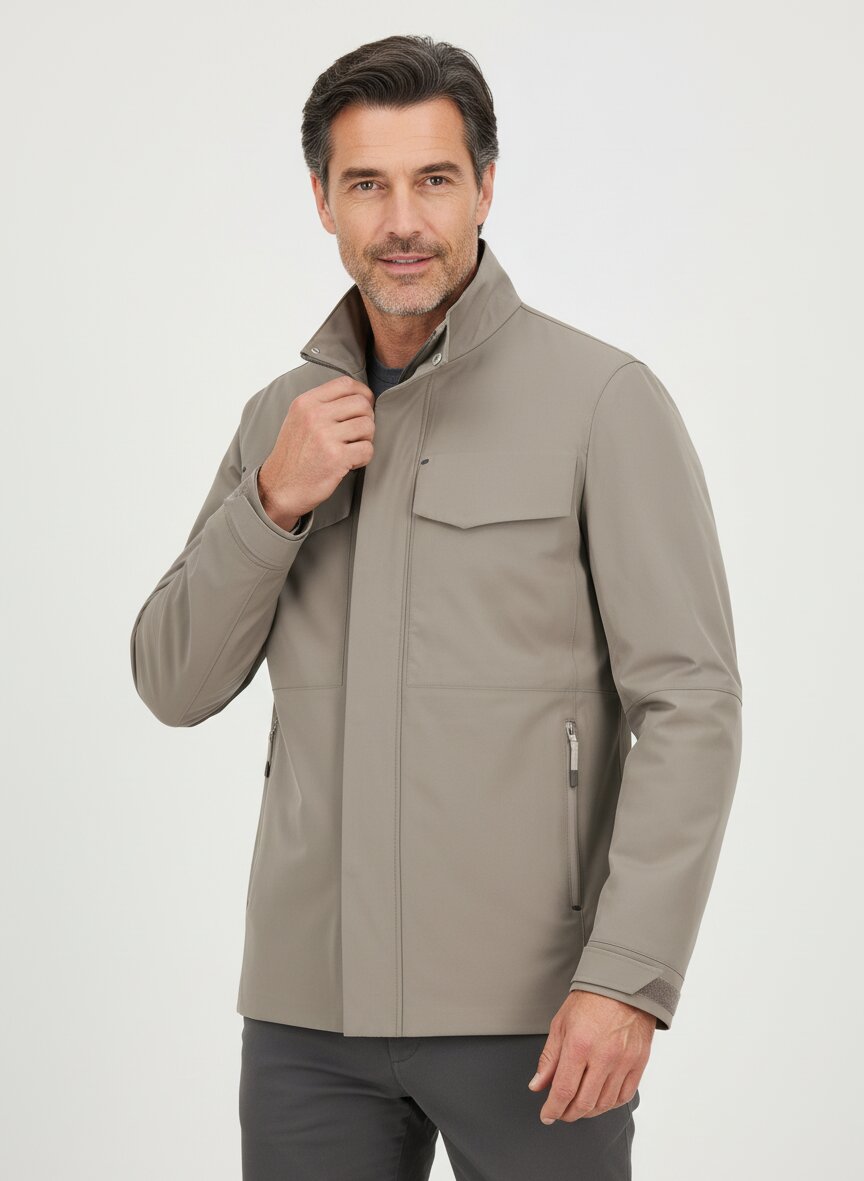 Das Besondere liegt in der Kombination aus getapten Nähten und der integrierten Regenkapuze im Stehkragen – Schutz und Eleganz in einem Detail. Das hochwertige Polyester-Polyurethan-Gewebe sitzt angenehm auf der Haut, bleibt leicht und ermöglicht volle Bewegungsfreiheit dank thermoregulierender Eigenschaften. Die wasserresistente Oberfläche und die Belüftungs-Stanzlöcher unter den Ärmeln machen diese Jacke zum perfekten Begleiter zwischen Business und Urban-Alltag. Der Zwei-Wege-Reißverschluss mit Druckknopfblende, die verdeckt geknöpften Brusttaschen und die nahtfeinen Seitentaschen zeigen durchdachte Funktionalität ohne Kompromisse. BOGGI MILANO verbindet seit 1939 italienische Schneidertradition mit innovativer Textiltechnologie – diese Jacke verkörpert genau diesen Anspruch: präzise Verarbeitung trifft auf alltägliche Robustheit.Unser Tipp: Kombinieren Sie die Jacke mit einer klassischen Chino und eleganten Sneakern für einen modernen Business-Casual-Look, der auch bei wechselhaftem Wetter überzeugt.
