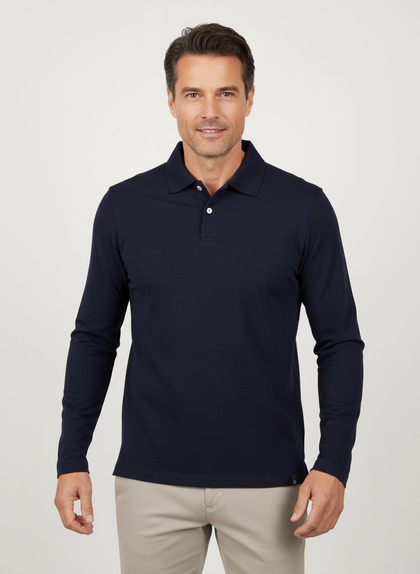 Dieses Langarm-Polo-Shirt nutzt recycelten Kaffeesatz im Gewebe – eine Technologie, die Feuchtigkeit zuverlässig von der Haut ableitet und unangenehme Gerüche aktiv neutralisiert. Der Baumwoll-Polyester-Mix mit 5 % Elasthan sorgt für sanfte Elastizität und bleibt auch bei intensiver Nutzung formbeständig. Die klassische kurze Knopfleiste und dezenten Seitenschlitze machen das Shirt gleichermaßen für Business-Casual und Freizeit geeignet. Im Regular Fit sitzt das Polo angenehm entspannt und bietet ausreichend Bewegungsfreiheit ohne zu locker zu wirken. BOGGI MILANO verbindet seit 1939 italienische Schneidertradition mit funktionaler Innovation – hier zeigt sich das in einer Materialentwicklung, die Alltag und Leistung intelligent verbindet.Unser Tipp: Kombinieren Sie das marineblaue Polo mit einer hellen Chino und braunen Loafern für einen zeitlosen Smart-Casual-Look, der von Büro bis Wochenende funktioniert.