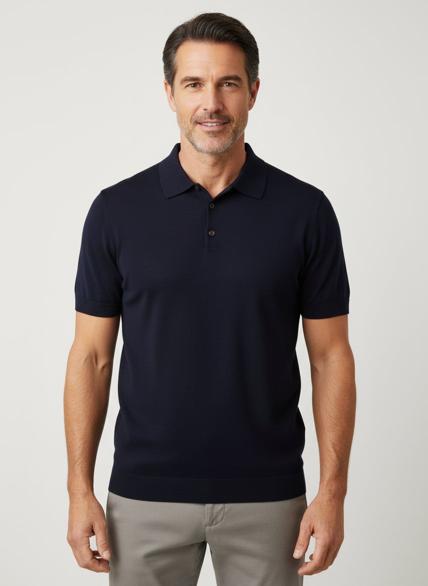 Navy-Feinstrick mit klassischem Polokragen aus reiner Merinowolle