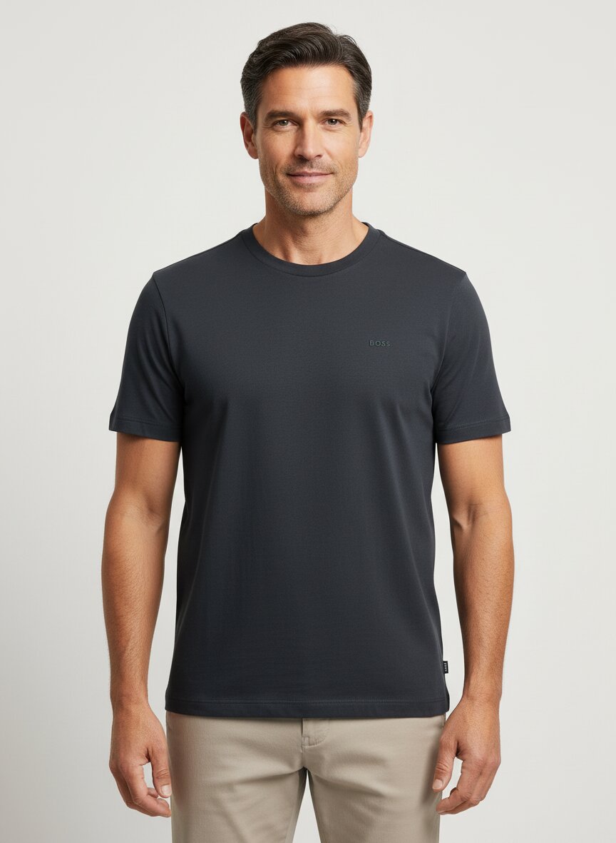 Das Thompson-Modell besticht durch sein tiefes Dunkelgrün und den klassischen Rundausschnitt – eine Farbwahl, die Souveränität ausstrahlt ohne zu dominieren. Die reine Baumwolle schmiegt sich angenehm an die Haut und bietet maximale Atmungsaktivität für warme Jahreszeiten. Dieser Schnitt funktioniert mühelos im Business-Casual-Kontext ebenso wie beim entspannten Wochenend-Look. Die präzise Verarbeitung und die großzügigen Maße (bei Größe M: 102 cm Brustweite) garantieren einen komfortablen, nicht zu engen Sitz. BOSS Black verbindet deutsche Präzision mit moderner Minimalität – jedes Stück ist auf Langlebigkeit und zeitlose Tragbarkeit ausgerichtet.Unser Tipp: Kombinieren Sie das Shirt mit einer hellen Leinenhose und Ledersneakern für einen urbanen Look, der vom Büro bis zum Feierabend funktioniert.