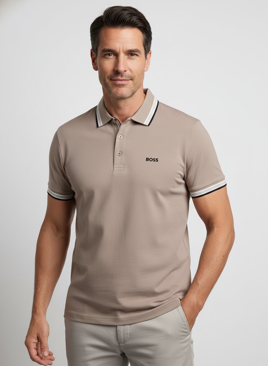 BOSS Green, Polo-Shirt Paddy, Regular, Baumwoll-Piqué, hellgreige