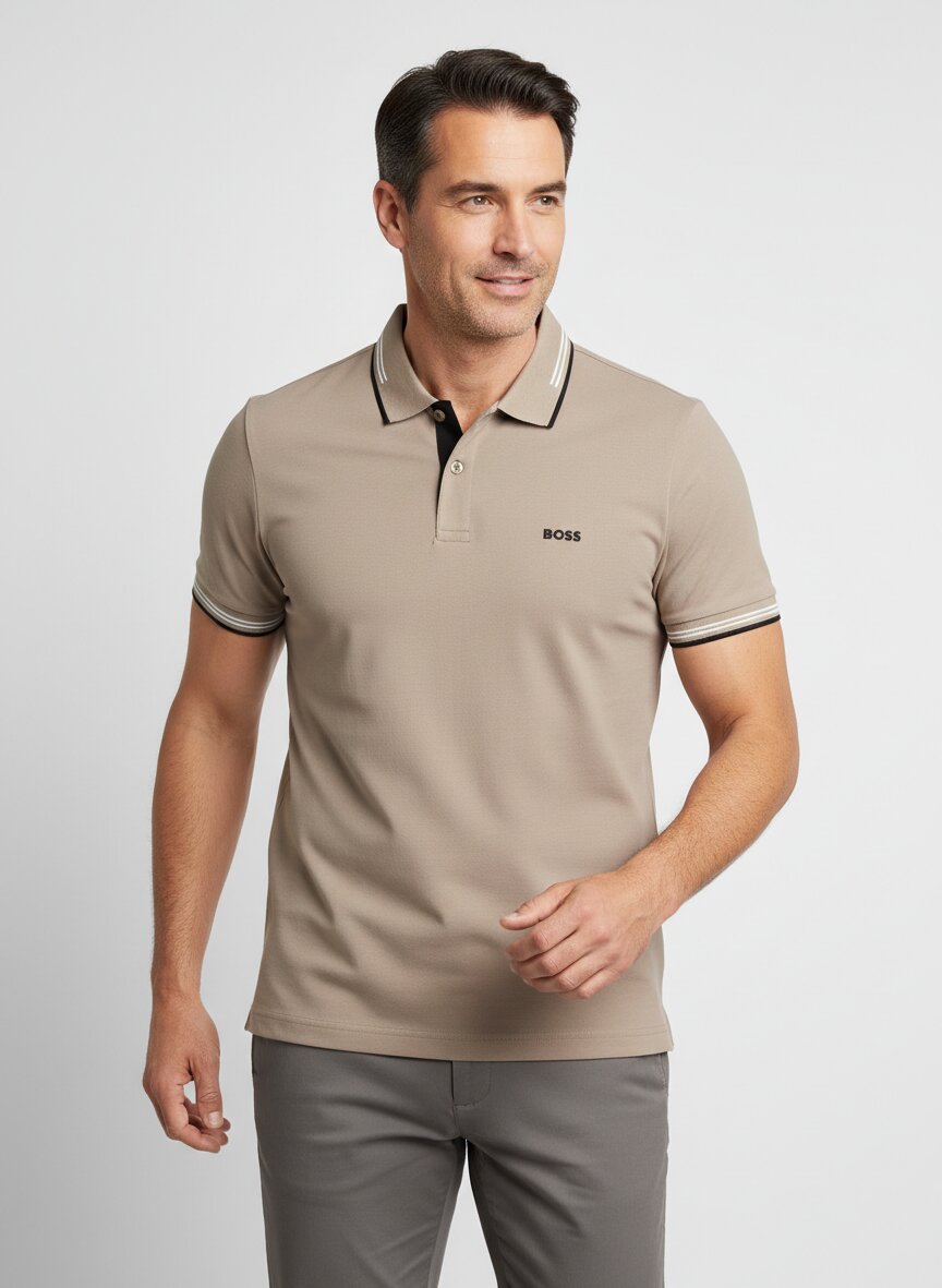 Das Polo-Shirt besticht durch sportive Kontraststreifen an den Ärmelbündchen und am Kragen, die einen eleganten Akzent setzen. Das BOSS-Logo ist diskret auf der Brust platziert.