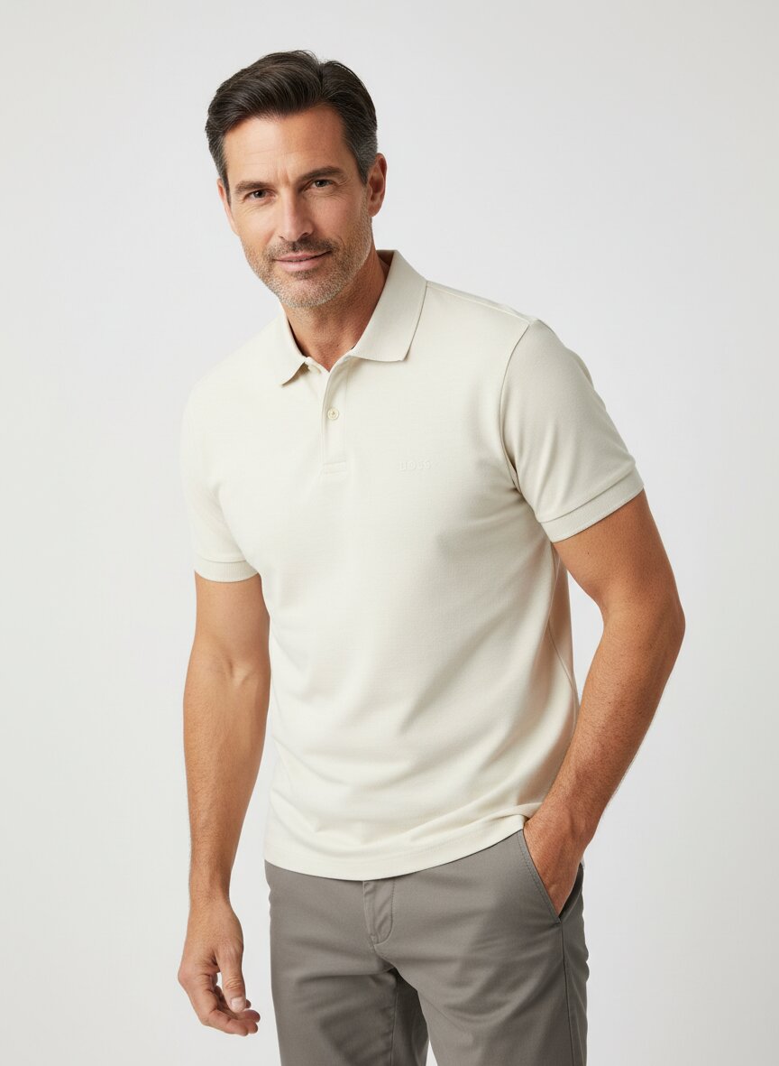 Dieses Polo-Shirt besticht durch sein zeitloses Hellbeige – eine Farbe, die zwischen Creme und Sand schwebt und zu fast jedem Sommerlook passt. Die reine Baumwolle im Jersey-Gewebe sitzt angenehm locker auf der Haut und bietet maximale Atmungsaktivität an warmen Tagen. Der Regular Fit und die klassische Knopfleiste machen das Pio zum vielseitigen Begleiter zwischen Alltag und Freizeit. Kurzarm und verstärkte Ärmelbündchen sorgen für Langlebigkeit und sichere Passform auch nach häufigem Waschen. BOSS Green verbindet Golfwear-Erbe mit urbaner Sportlichkeit – das Pio verkörpert diese Philosophie durch handwerkliche Präzision und funktionales Design ohne Schnörkel.Unser Tipp: Kombinieren Sie das Polo mit einer marineblauen Leinenhose und weißen Sneakern für einen entspannten, eleganten Sommerlook, der auch im Büro überzeugt.