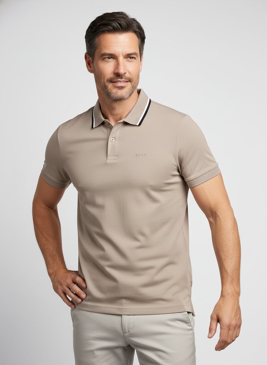 BOSS Green, Polo-Shirt, Slim Fit, Baumwoll-Jersey, greige meliert