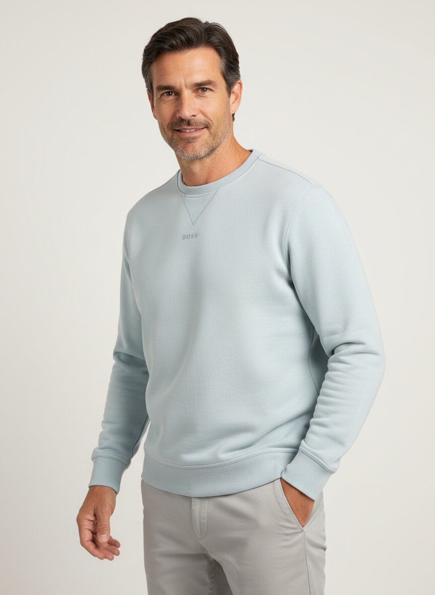 Die dezente Farbgebung in Hellgraugrün wirkt zeitlos und lässt sich mühelos in verschiedenste Kombinationen integrieren. Das Material aus 100 % Baumwolle bietet maximale Atmungsaktivität und Tragekomfort – ideal für wärmere Tage ohne auf Gemütlichkeit zu verzichten. Der klassische Rundhals-Ausschnitt und die entspannte Passform des Modells Smallcrew machen dieses Sweatshirt zum vielseitigen Begleiter für Alltag und Freizeit. Mit einer Rückenlänge von etwa 66 cm bei Größe M sitzt das Shirt proportional und nicht zu lang. BOSS Orange verbindet bei diesem Piece urbane Lässigkeit mit nachhaltiger Materialwahl – ein Statement für bewusste Herrenmode ohne Kompromisse.Unser Tipp: Kombinieren Sie das Sweatshirt mit einer dunklen Chino und weißen Sneakern für einen modernen Casual-Look, der auch im Büro überzeugt.