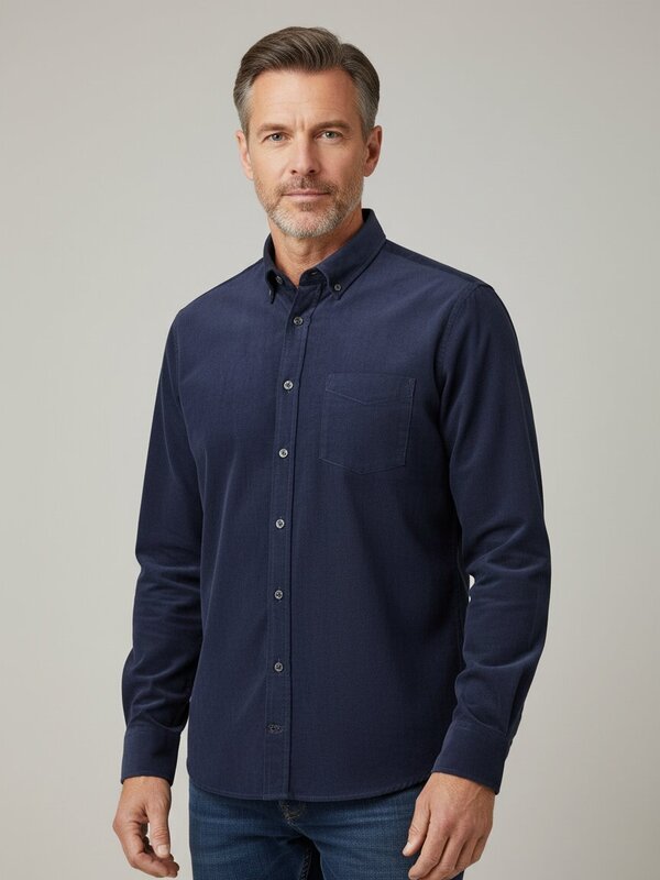 Marineblaues Babycord-Hemd mit klassischem Button-Down-Kragen