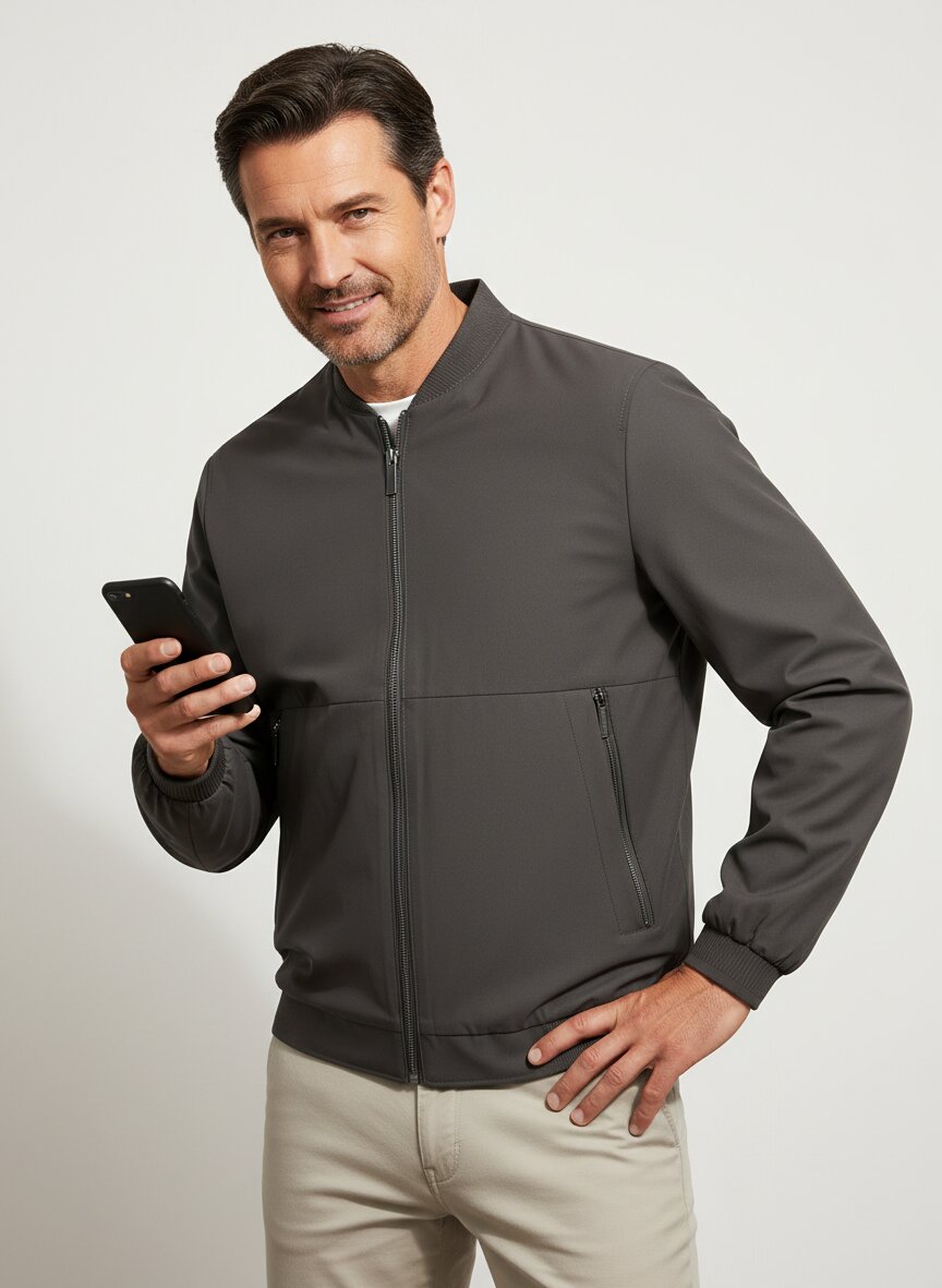 Der Blouson mit seinem markanten Collegekragen ist der ideale Begleiter für wechselhafte Übergangstage und eignet sich perfekt für urbanen Alltag und Reisen. Er lässt sich vom Büro bis zum Wochenende vielseitig kombinieren.
