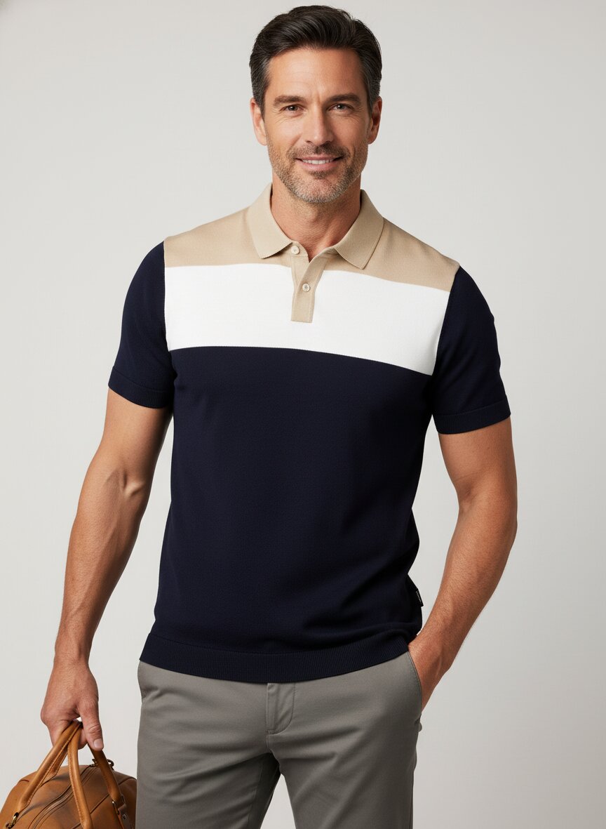 Feines, leichtes Polo-Shirt mit extravagantem Blockstreifen