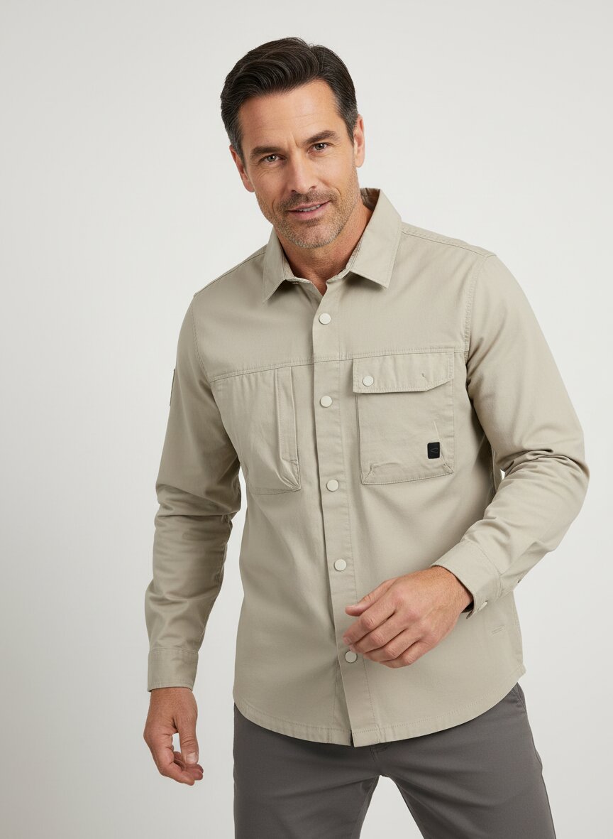 camel active, Overshirt, Baumwolle, Kent, Brusttasche, beige