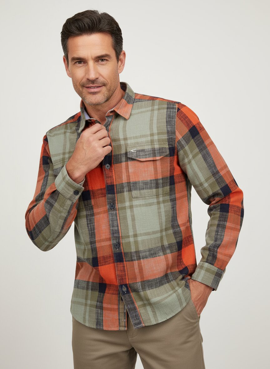 camel active, Hemd, Baumwolle, Kent, Brusttasche, orange kariert