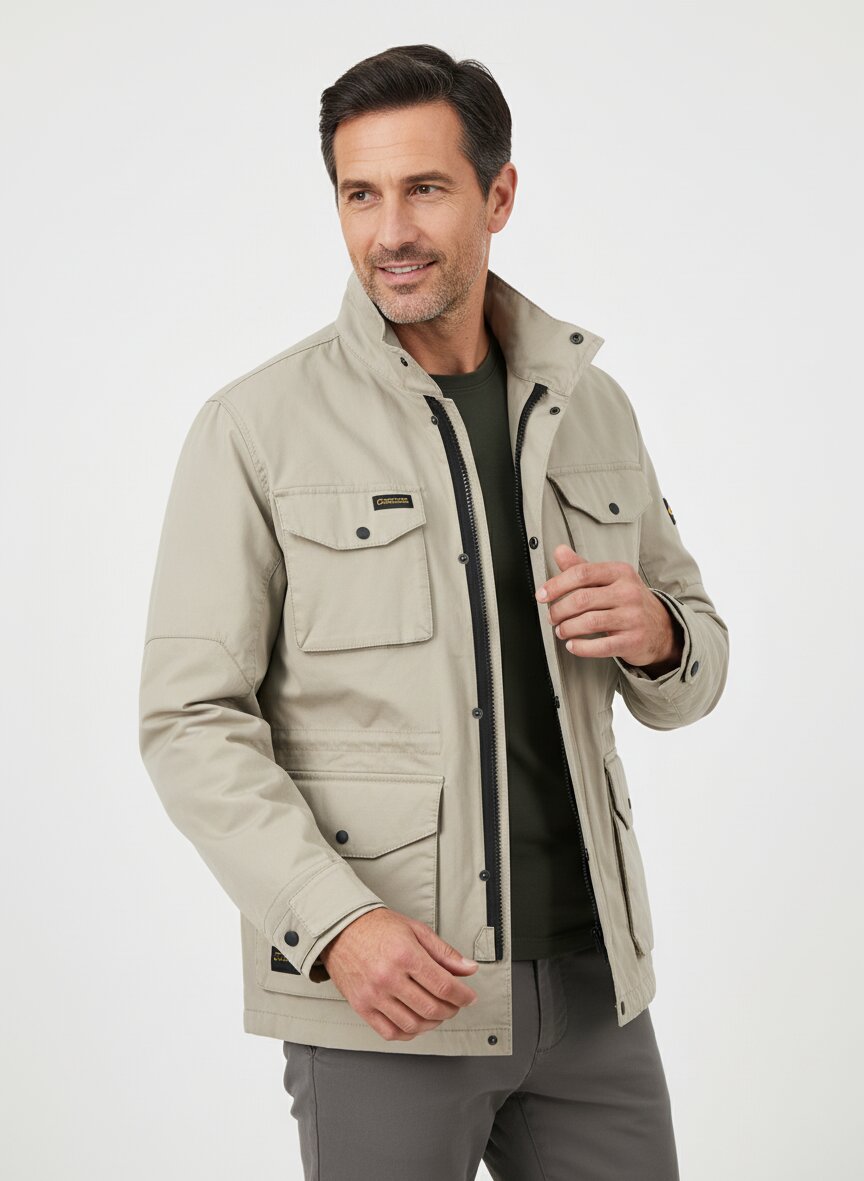 Die Jacke ist ideal für Frühling und Sommer konzipiert. Das leichte Baumwoll-Stretch-Material bietet Komfort ohne zu überwärmen.
