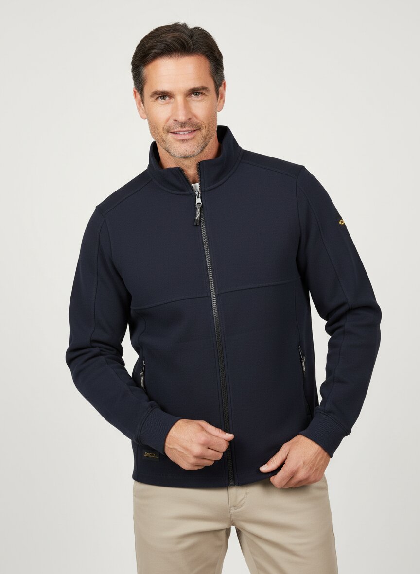 Die Sweatjacke ist aus atmungsaktiver Baumwoll-Piqué gefertigt. Diese hochwertige Materialqualität ermöglicht eine optimale Belüftung und Feuchtigkeitsableitung, was sie besonders angenehm zu tragen macht.