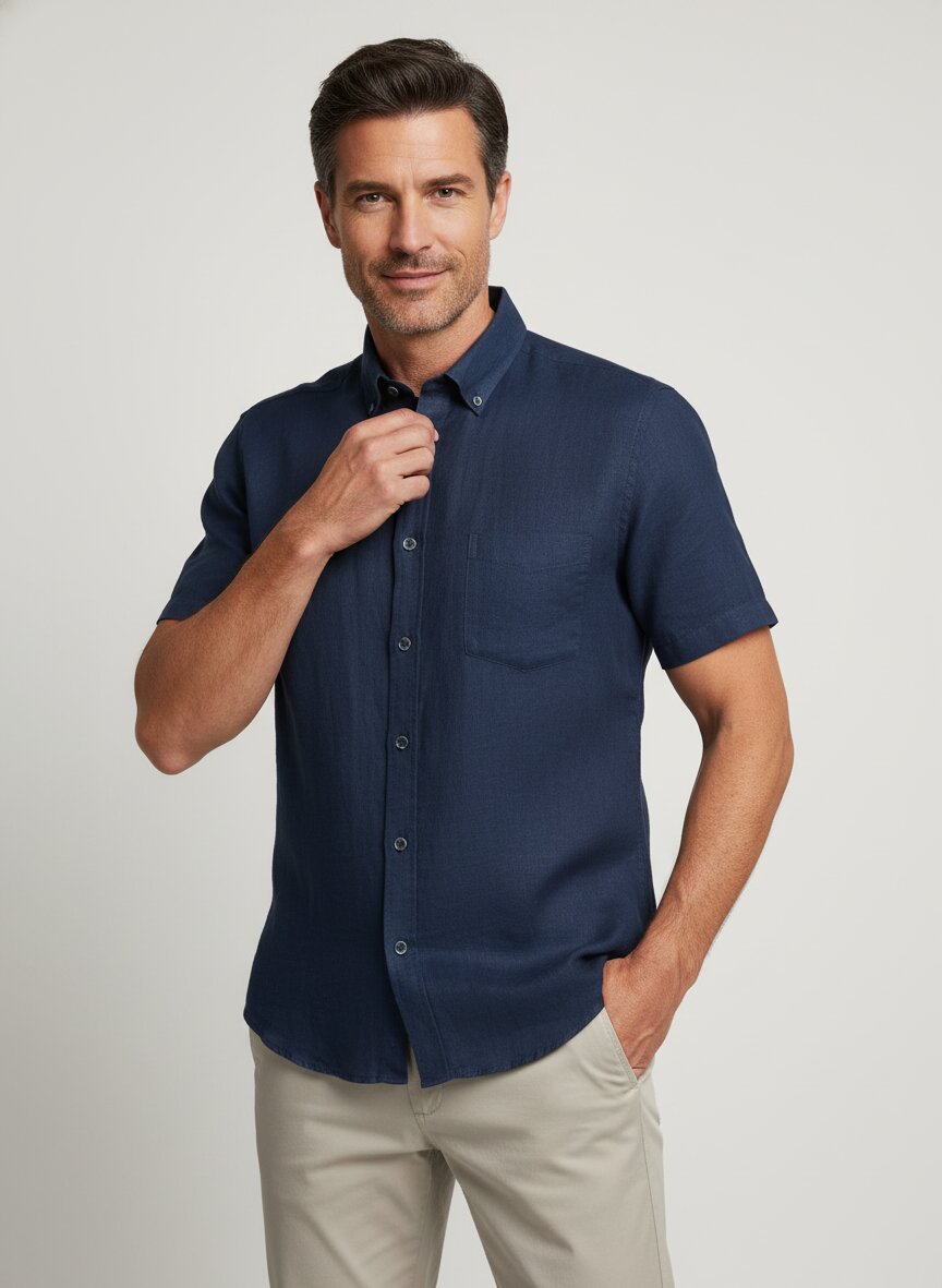 CasaModa, Kurzarmhemd, Casual, Leinen, Button-Down, Brusttasche, blau