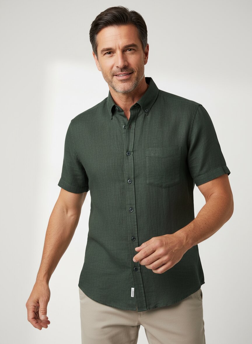 CasaModa, Kurzarmhemd, Casual, Leinen, Button-Down, Brusttasche, grün