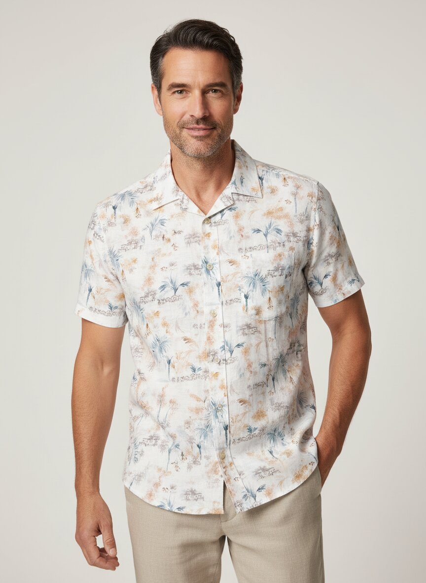 Luftiges Leinen-Baumwoll-Hemd mit sommerlichen Print