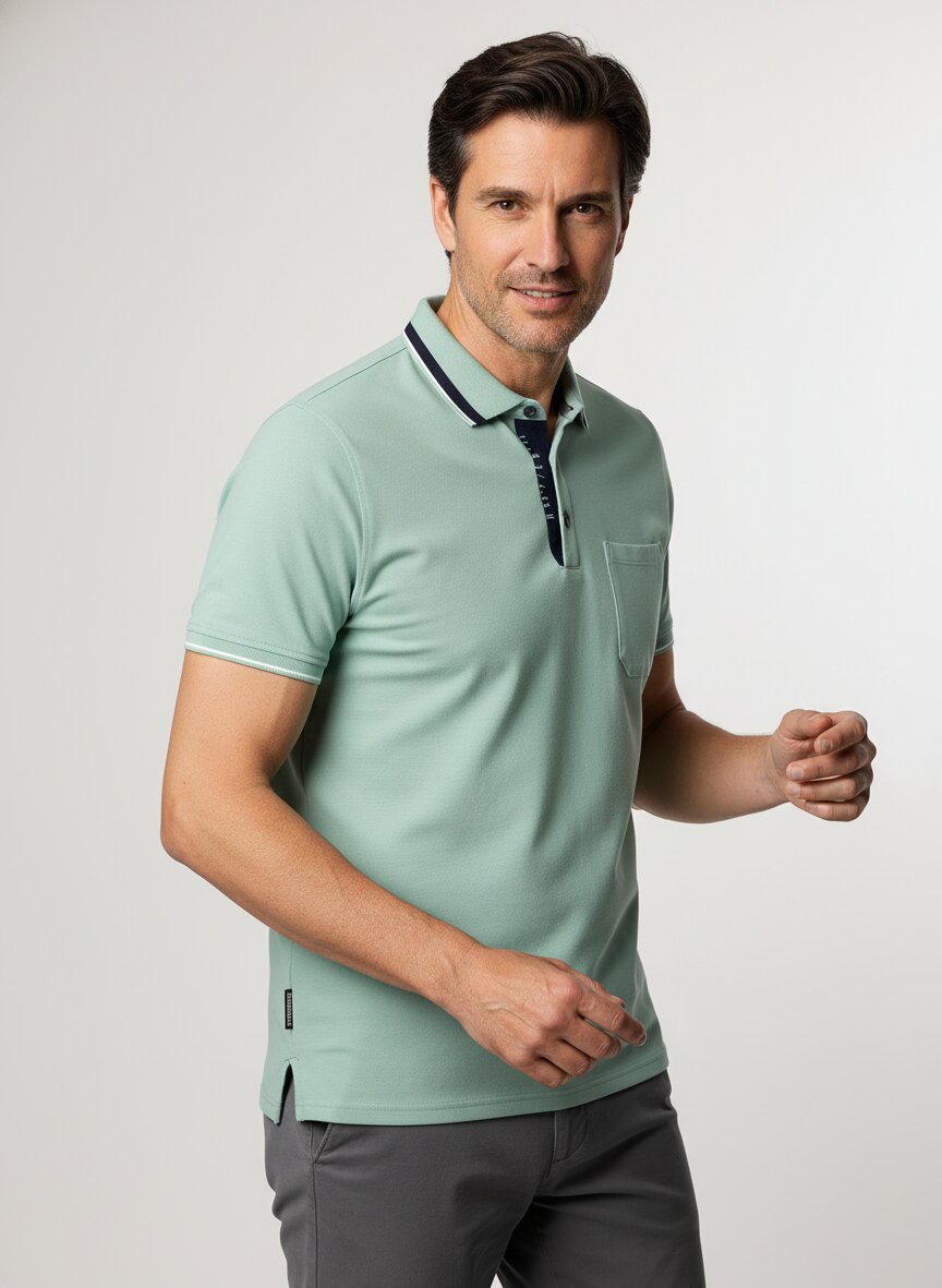 Klassisches Polo-Shirt in frischem Grün mit Kontrastdetails