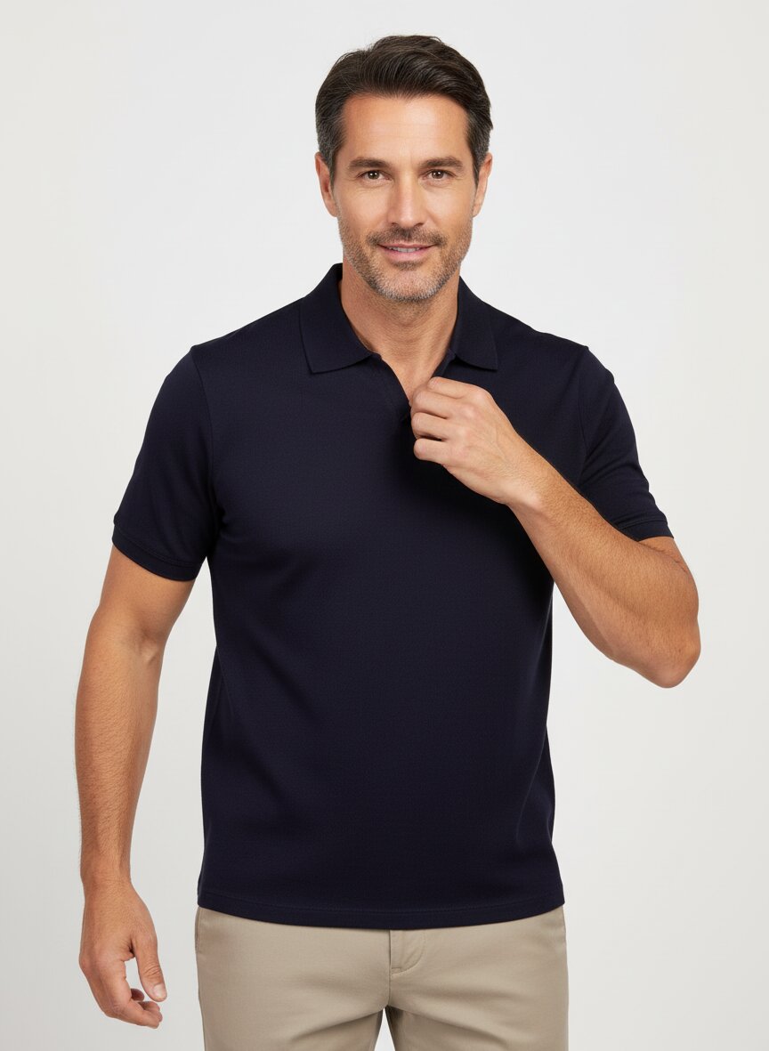 Polo-Shirt mit V-Kragen aus sehr sommerlichem, leichten Strick