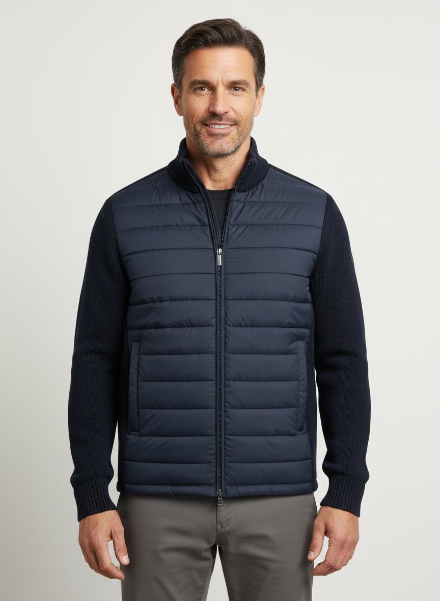 Die dunkelblaue Jacke kombiniert wattierte Stepp-Partien am Vorderteil mit elastischen Strickpartien an Rücken und Ärmeln für maximale Bewegungsfreiheit. Der Baumwoll-Polyester-Mix der Strickpartien fühlt sich weich an, während die wasserabweisende Polyamid-Front vor Wind und Nässe schützt. Diese durchdachte Konstruktion macht die Jacke zum idealen Begleiter für aktive Herbsttage in der Stadt. Verdeckte Reißverschlüsse an den Seitentaschen und ein weitenregulierbarer Saum unterstreichen die sportlich-cleane Optik. Colmar überträgt seine über 100-jährige Expertise aus dem Wintersport in moderne Alltagsmode – technisch ausgereift und stilsicher italienisch. Der Zwei-Wege-Reißverschluss ermöglicht flexibles Layering bei wechselhaften Temperaturen.Unser Tipp: Tragen Sie die Jacke über einem feinen Merino-Pullover und kombinieren Sie dazu eine graue Flanellhose für einen sportlich-eleganten Business-Casual-Look.