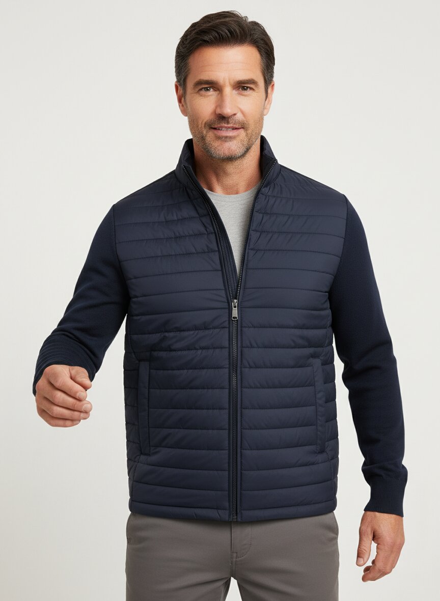 Die Hybridjacke verbindet eine wattierte Polyamid-Front mit einer weichen Baumwoll-Strickrückseite – eine durchdachte Konstruktion, die Wärmeschutz und Bewegungsfreiheit intelligent vereint. Das Polyamid-Material der Vorderseite liegt glatt auf der Haut, während die Strick-Rückseite atmungsaktiv und angenehm elastisch bleibt. Der durchgehende Zwei-Wege-Reißverschluss mit Stehkragen macht die Jacke zur vielseitigen Übergangslösung für Alltag und Urban-Styling. Praktische seitliche Taschen mit Reißverschluss und ein weitenregulierter Saum sorgen für Funktionalität ohne Kompromisse. COLMAR setzt seit über 100 Jahren auf diese Kombination aus Wintersport-Technologie und zeitlosem Design – Funktionalität, die im Alltag ankommt.Unser Tipp: Kombinieren Sie die Jacke mit einer hellen Chino und weißen Sneakern für einen modernen Layering-Look, der von Frühjahr bis Sommer funktioniert.