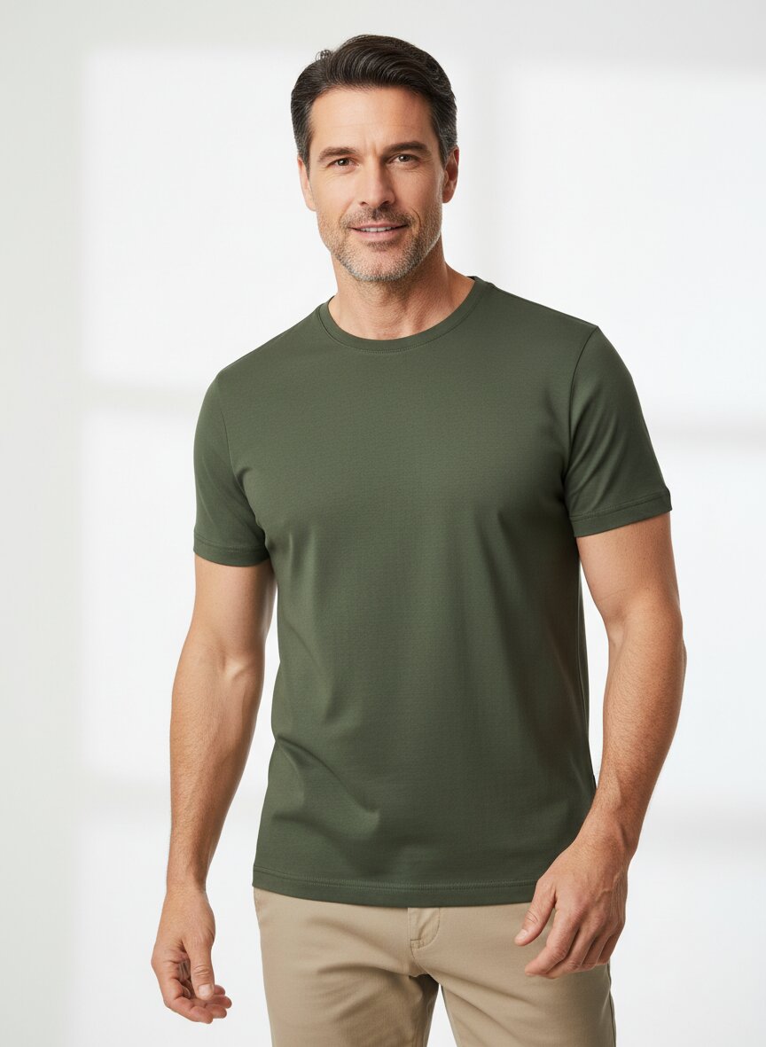 Das T-Shirt hat einen Regular Fit und bietet eine komfortable, klassische Passform, die weder zu eng noch zu locker sitzt.