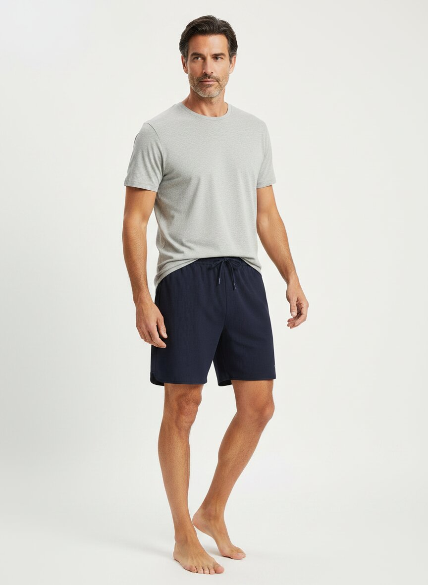 Die Bermudas verfügen über einen elastischen Bund mit Kordelzug zum individuellen Anpassen der Passform. Das Design ist speziell für Lounge- und Schlafkomfort ausgelegt.