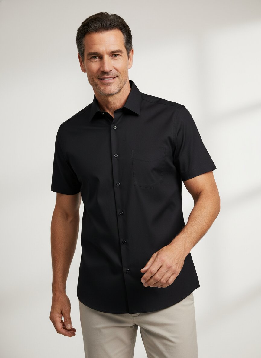 Klassisches Schwarzhemd in bügelfreier Baumwolle
