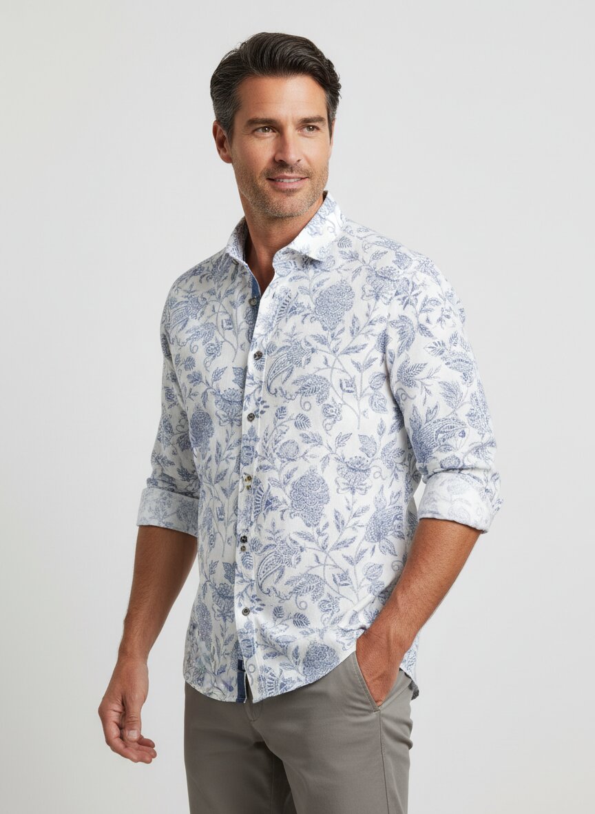 Zartes Blau mit feinem Blütenspiel – das Hemd Giuseppe