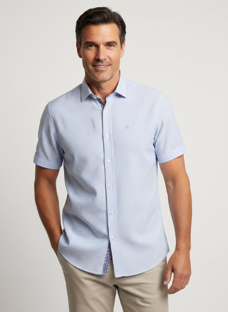 FIL NOIR, Kurzarmhemd Roma, Shaped Fit, Leinen-Baumwolle, hellblau gestreift