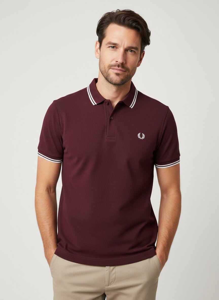 Das satte Bordeaux verleiht diesem Polo-Shirt eine markante Präsenz, während die klassischen Kontraststreifen an Kragen und Ärmelbündchen für den typischen Fred Perry-Look sorgen. Das hochwertige Baumwoll-Piqué fühlt sich griffig an und reguliert die Temperatur – ideal für warme Tage oder als Schicht unter einem Blazer. Die zeitlose Silhouette mit Knopfleiste macht das Shirt zum vielseitigen Begleiter für Büro, Freizeit oder sportliche Anlässe. Bei Größe M misst die Rückenlänge etwa 70 cm und die Brustweite circa 100 cm – eine moderne, nicht zu enge Passform. Fred Perry steht seit 1952 für die perfekte Verbindung aus Tennis-Heritage und britischer Subkultur – der gestickte Lorbeerkranz ist längst zum Symbol für authentischen Stil geworden.Unser Tipp: Kombinieren Sie das bordeauxfarbene Polo zu hellen Chinos und weißen Sneakern für einen frischen Kontrast.