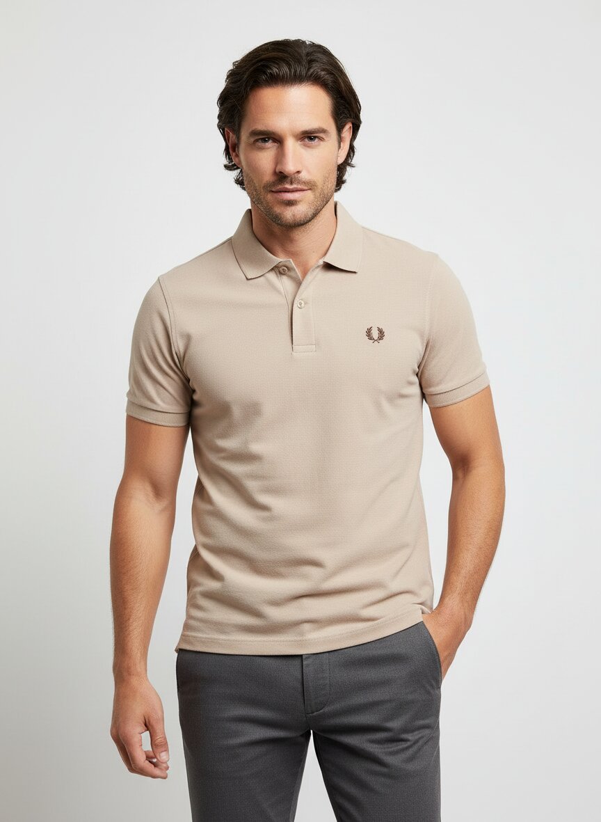 Das Shirt verf\u00FCgt \u00FCber die ikonische, kontrastreich gestickte Lorbeerkrone auf der Brust \u2013 das Erkennungszeichen von Fred Perry seit 1952. Es hat eine dezente Zwei-Knopfleiste und eine geradlinige Silhouette f\u00FCr zeitlose Eleganz.
