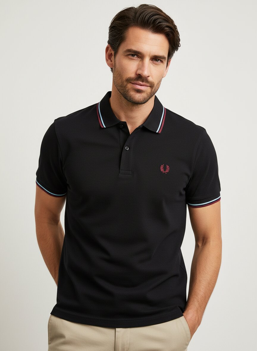 Das Polo-Shirt besticht durch die charakteristische Zwei-Knopfleiste und die feinen Kontraststreifen an Kragen und Ärmelbündchen, die dem zeitlosen Design Präsenz verleihen. Die hochwertige Baumwoll-Piqué fühlt sich angenehm griffig an und bietet optimale Atmungsaktivität für warme Tage – das Material behält seine Form und Farbe dauerhaft. Als vielseitiges Basics-Piece funktioniert das Polo sowohl im Business-Casual als auch beim entspannten Wochenend-Look perfekt. Der schlichte schwarze Grundton lässt sich mühelos mit Chinos, Jeans oder Shorts kombinieren und bildet eine solide Grundlage für verschiedenste Styling-Varianten. Fred Perry steht seit 1952 für britische Tennertradition und kulturelle Authentizität – der Lorbeerkranz ist nicht nur Logo, sondern Versprechen von handwerklicher Qualität und zeitlosem Stil.Unser Tipp: Tragen Sie das Polo zu einer hellen Chino und weißen Sneakern für einen klassisch-modernen Look, der von Frühjahr bis Sommer funktioniert.