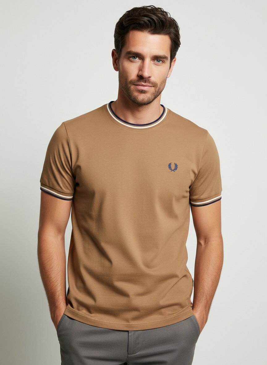 Die sportiven Kontraststreifen an den Rippenstrickabschlüssen verleihen diesem dunkelgrünen T-Shirt einen charakteristischen Look. Die reine Baumwolle fühlt sich angenehm weich an und bietet atmungsaktiven Tragekomfort für warme Tage. Der klassische Rundhalsausschnitt macht das Shirt zum vielseitigen Begleiter für Freizeit und urbane Anlässe. Die präzise Verarbeitung zeigt sich in den sauberen Abschlüssen und der formstabilen Passform. Fred Perry verbindet seit 1952 britische Tennistradition mit zeitlosem Design – der ikonische Lorbeerkranz steht für authentische Sportswear mit Subkultur-Appeal.Unser Tipp: Kombinieren Sie das T-Shirt mit hellen Chinos und weißen Canvas-Sneakern für einen entspannten Retro-Look.