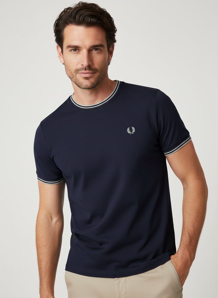Die charakteristischen Rippenstrickabschlüsse an Hals und Ärmeln setzen in Kontrastfarbe ein subtiles, aber unverkennbares Zeichen. Die reine Baumwolle liegt hautfreundlich an und bietet maximale Atmungsaktivität – ideal für warme Tage ohne zu verrutschen oder auszuleiern. Dieser Schnitt funktioniert mühelos im Alltag, zur Chino ebenso wie zur Jeans, und bewahrt dabei eine sportive Eleganz, die nicht aufdringlich wirkt. Die Rückenlänge von etwa 71 cm bei Größe M sorgt für eine klassische Proportion ohne Überfluss. Fred Perry hat dieses T-Shirt-Modell seit den 1950er Jahren kultiviert – eine Ikone der britischen Tenniskultur, die längst über den Court hinaus wirkt.Unser Tipp: Kombinieren Sie das Navy-Shirt mit einer hellen Chino und Leather-Sneakern für einen zeitlosen Smart-Casual-Look, der zu jeder Jahreszeit passt.