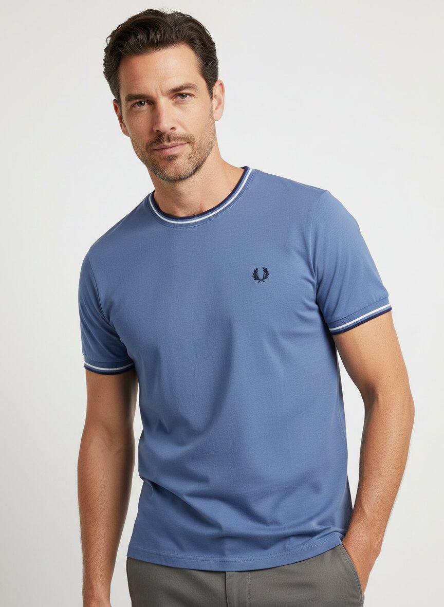 Das Rundhals-Shirt präsentiert sich in einem klaren Blau mit feinen Kontraststreifen an den Rippenstrickabschlüssen – ein zeitloses Erkennungszeichen der Marke. Die reine Baumwolle sitzt angenehm auf der Haut, bietet optimale Atmungsaktivität und behält ihre Form über viele Tragezyklen hinweg. Mit seiner geradlinigen Silhouette funktioniert das Shirt sowohl im Alltag als auch in entspannteren Business-Kontexten perfekt. Die subtilen Streifen-Details an Hals und Ärmeln verleihen dem Basics-Piece eine unaufdringliche Raffinesse, die über schlichte Einfarbigkeit hinausgeht. Fred Perry verbindet seit 1952 britische Tennestradition mit kulturellem Selbstbewusstsein – das Polo-Shirt ist eines seiner Gründungsdesigns und steht für zeitlose Qualität ohne Kompromisse.Unser Tipp: Kombinieren Sie das Shirt mit einer hellen Chino und Sneakern für einen entspannten Wochenend-Look oder layern Sie es unter einer Strickjacke für kühlere Frühjahrstage.