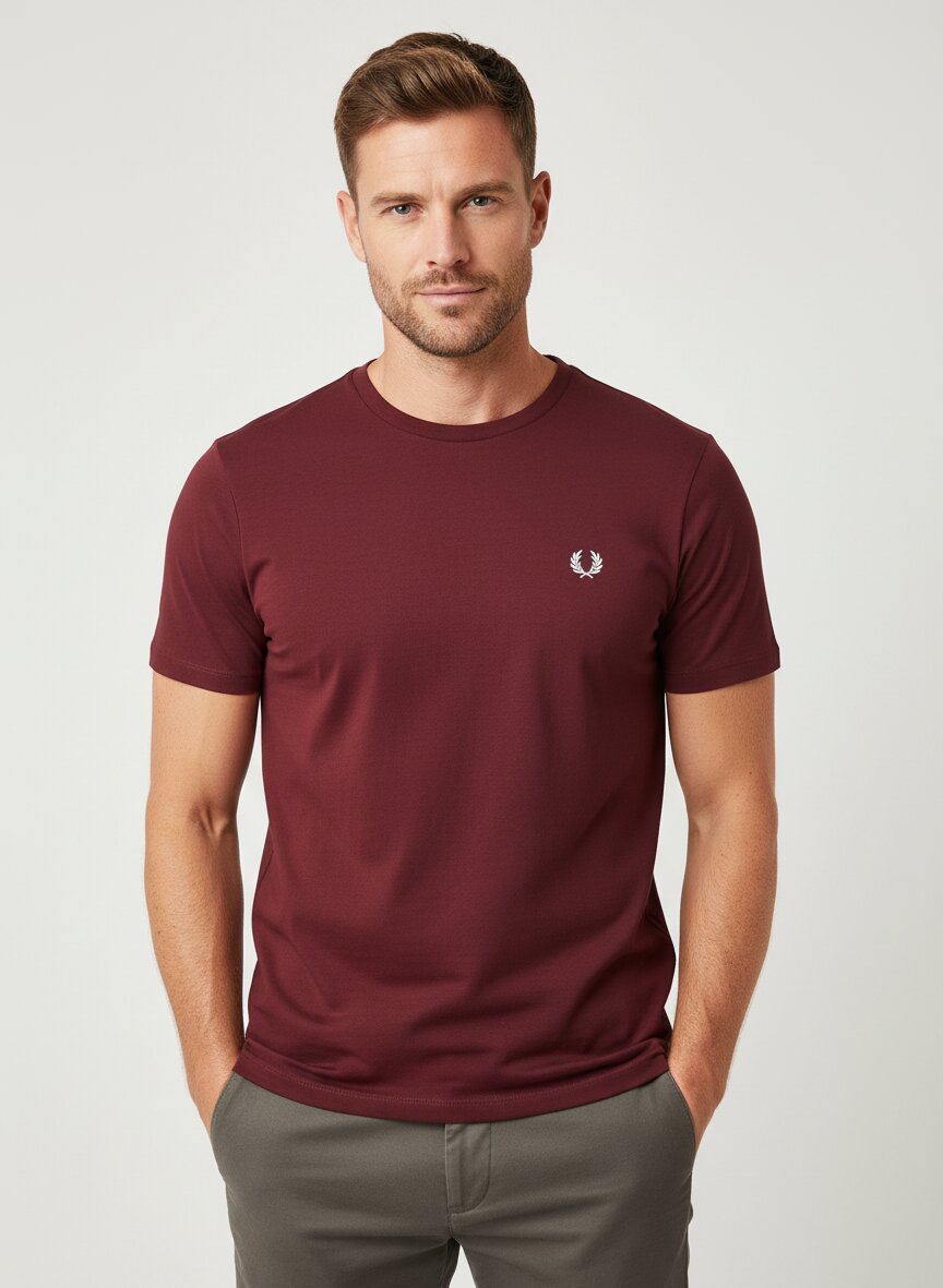 Dieses T-Shirt besticht durch sein tiefes Bordeaux und die handwerklich präzise verarbeiteten Rippenbündchen an Ärmeln und Ausschnitt – ein Detail, das Fred Perry von Massenware unterscheidet. Die 100% Baumwolle sitzt angenehm auf der Haut, atmet zuverlässig und behält ihre Form über viele Tragezyklen. Mit Rundausschnitt und schmalem Schnitt wirkt das Shirt sowohl zum Chino als auch zur Jeans authentisch-sportlich. Die Rückenlänge von etwa 71 cm bei Größe M sorgt für ideale Proportionen ohne zu lang zu wirken. Fred Perry verbindet seit 1952 britische Tennistradition mit kulturellem Selbstbewusstsein – das Logo ist nicht Dekoration, sondern Versprechen von Qualität und zeitlosem Stil.Unser Tipp: Kombinieren Sie das Bordeaux-Shirt mit einer hellen Chino und weißen Sneakern für einen klassischen, mühelos eleganten Look, der über alle Jahreszeiten trägt.